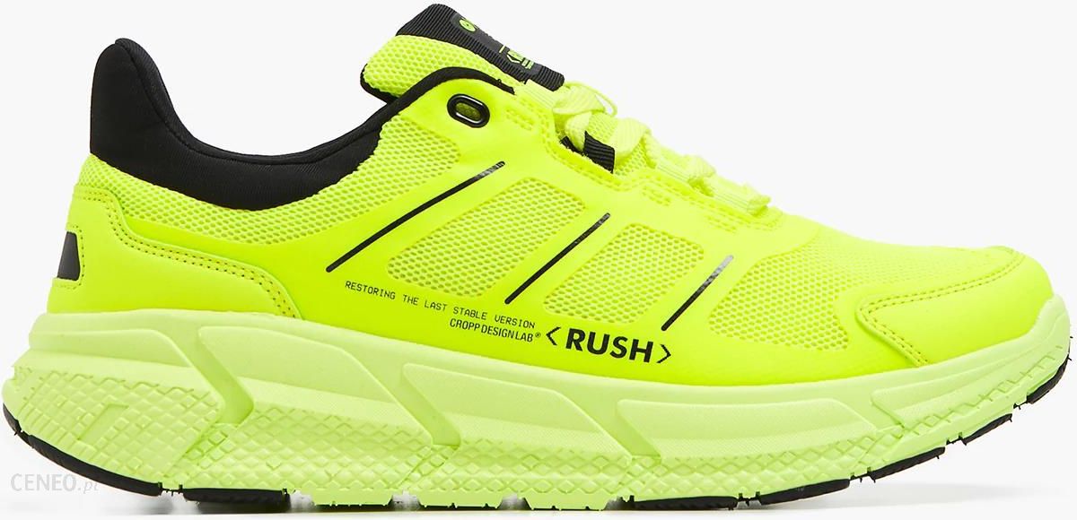 Męskie buty sportowe w mocnym, neonowym odcieniu żółtego. Wykonane z materiałów mieszanych, m. in. pianki EVA, imitacji skóry i phylonu.