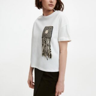 Reserved - T-shirt z haftowanym wzorem - Biały