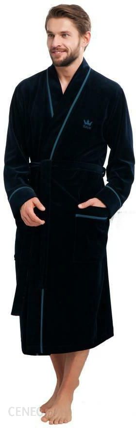 Szlafrok męski 852 L granatowy długi z weluru to klasyczny model, który można zestawiać z wieloma piżamami męskimi z naszej kolekcji. Na całej długości szlafroka znajduje się plisa, ozdobiona bawełnianą wypustką w kolorze niebieskim. Podobnie wykończone są rękawy i praktyczne kieszenie. Szlafrok zawiązywany jest na wygodny pasek. W górnej części, po lewej stronie znajduje się elegancki haft, kolorystycznie dobrany do koloru wypustki. Szlafrok posiada wygodną długość za kolana. Całość prezentuje się klasycznie i stylowo.