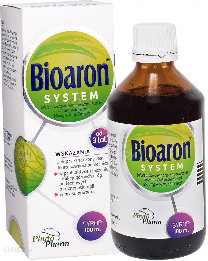 Syrop Bioaron SYSTEM zawiera dwie substancje czynne: wodny wyciąg ze