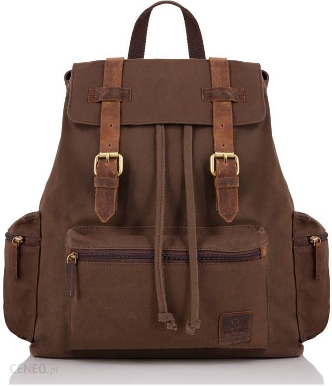 Duży i pakowny miejski plecak dla mężczyzny, utrzymany w stylistyce vintage. Został wykonany z solidnej bawełny canvas, w połączeniu ze wstawkami z postarzanej skóry naturalnej. Plecak został wyposażony w dwie kieszenie boczne oraz frontową, pojemną kieszeń na zamek. Dodatkowo, na tyle znajduje się kieszeń o długości zamka 16 cm. Klapa zapinana jest na magnetyczne napki, komora główna zaciągana troczkiem. Wewnątrz dwie kieszenie-wsuwki, kieszonka na suwak oraz przegroda na tablet z dodatkową kieszenią na zamek. Regulowane szelki zapewniające komfort noszenia nawet przy dużych obciążeniach.