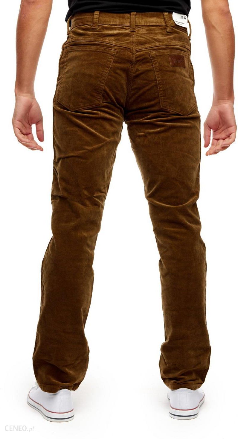 Męskie spodnie sztruksowe Wranglerbrązoweelastycznezwężane